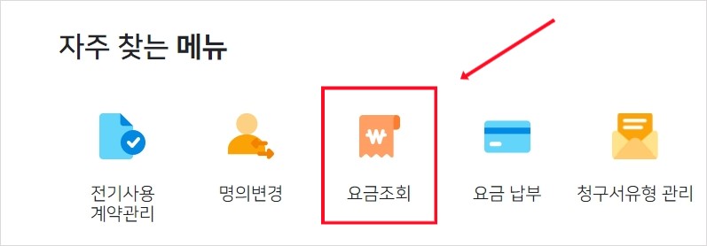 1. 사이트 아래로 가면 자주 찾는 메뉴에 요금조회 라는 란이 있습니다. 이 요금조회로 들어가줍니다.