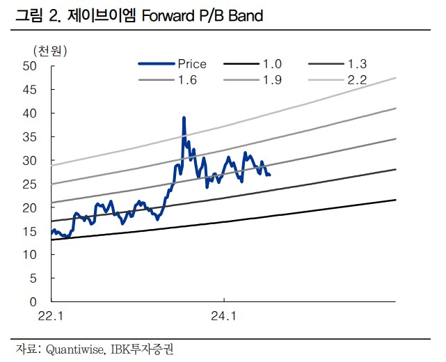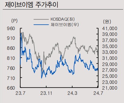 제이브이엠의 주가는 하반기 신규 계약과 글로벌 시장 진출에 따라 변동될 가능성이 큼. 현재 주가는 저평가 상태로, 실적 개선이 예상됨에 따라 상승 여력이 큼. 목표 주가는 42,000원으로 설정됨. 제이브이엠의 주가가 상승할 것으로 예상하는 이유는 주요 사업 부문에서의 성장이 지속되고 있으며, 특히 자동화 시스템 부문에서의 성과가 두드러지기 때문임.