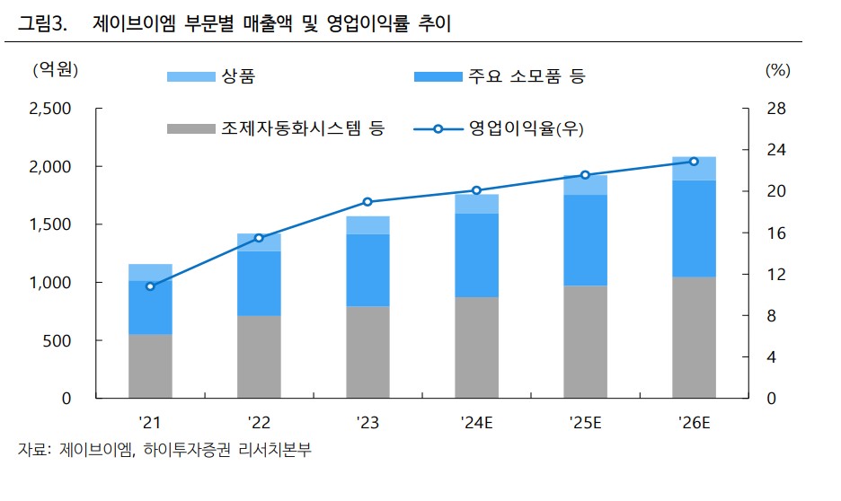 제이브이엠은 2024년 1분기부터 매출 성장이 본격화될 것으로 기대됨. 북미 지역에서는 팬데믹 이후 인력 부족 및 인건비 증가로 약국 자동화 시장이 성장하고 있으며, 유럽 지역에서는 인력난과 임금 상승으로 자동화 장비 수요가 확대되고 있음.