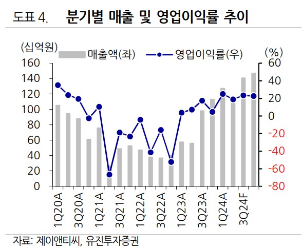 A. 제이앤티씨의 최근 실적은 안정적인 성장을 보이며, 2024년 하반기부터 실적 개선이 기대됨.