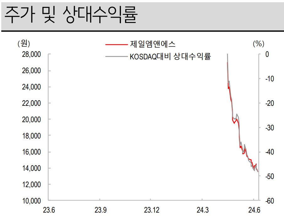 제일엠앤에스의 주가는 고객사의 투자 확대와 방산 분야의 성장이 주요 요인으로 작용할 것임. 현재 주가는 13,450원으로, 믹싱 장비의 수요 증가와 방산 분야의 독점적 위치가 주가 상승에 긍정적인 영향을 미칠 것임.