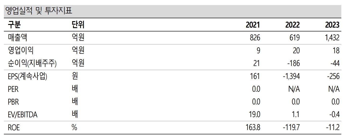 | 매출액 | 826억 | 619억 | 1,432억 | 742억 | - |
