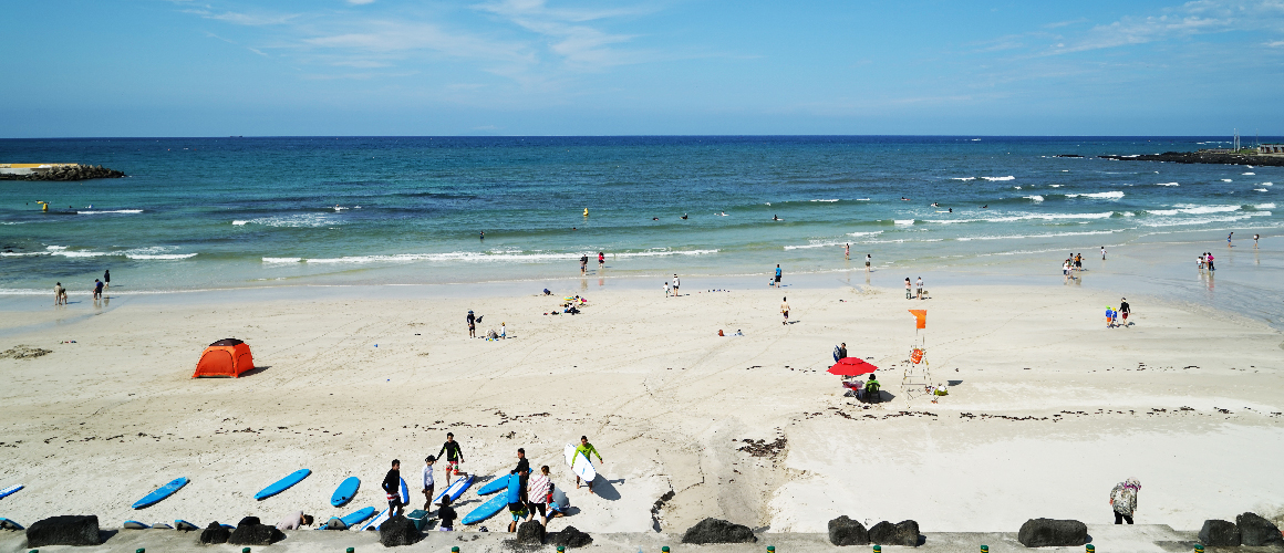 제주도 가볼만한곳 10곳중 하나인 협재해수욕장은 제주도에서 가장 아름다운 해변 중 하나임! 에메랄드빛 바다와 검은 현무암이 어우러져 있습니다. 이곳은 수상레포츠를 즐기기에 최적의 장소이며, 협재 동굴 등 다양한 명소가 주변에 있어 볼거리가 많습니다. 해변 근처에는 캠핑장과 펜션이 있어 편안한 여행을 즐길 수 있습니다.