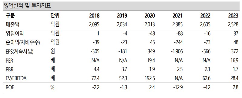 | 매출액 | 2,385십억 | 2,605십억 | 2,528십억 | 634십억 |