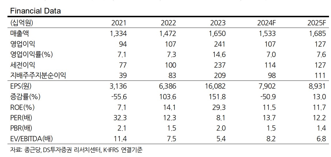 | 단위(원) | 2021년 | 2022년 | 2023년 | 2024년 1분기 |