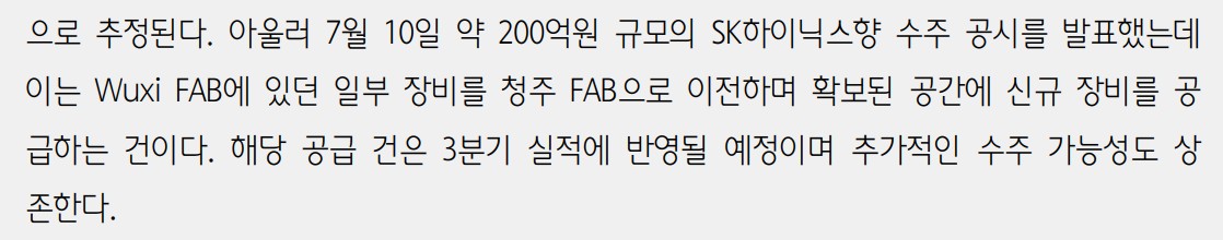 - SK하이닉스향 수주로 3분기 실적 기대