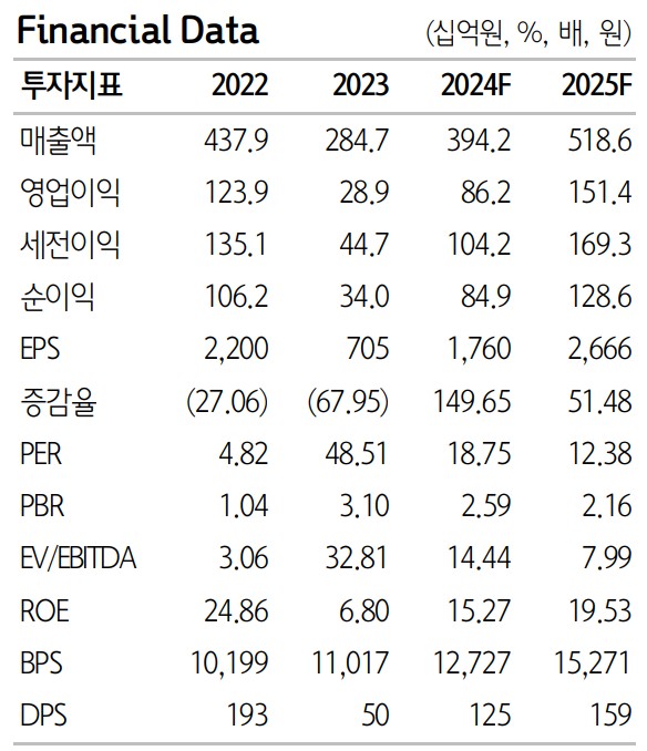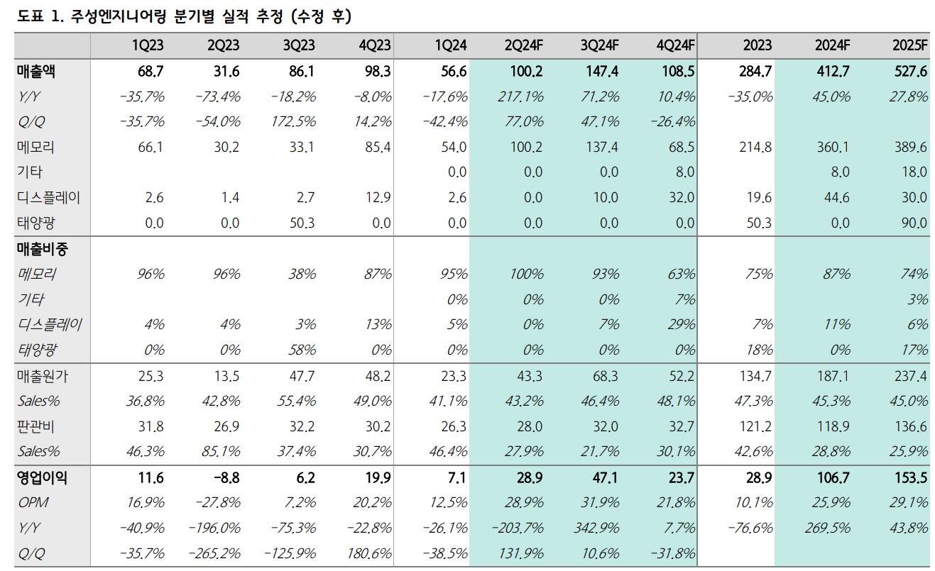 주성엔지니어링은 2024년 하반기에 더 좋은 실적을 예상하고 있음. 연간 매출액은 4,127억원, 영업이익은 1,067억원으로 각각 44.9%, 269.0% 증가할 것으로 전망됨. 중국 고객사의 매출 비중은 점차 감소할 것으로 보이며, 신규 북미 메모리 고객사향 장비 공급이 하반기에 집중될 예정임. 4분기에는 북미 비메모리 업체향 장비 출하가 계획되어 있으며, 기술 통합 과정이 마무리되면서 연내 출하가 가능할 것으로 보임. 또한, 디스플레이 부문에서는 고객사의 8세대 IT OLED향 투자에 따른 장비 매출이 반영될 것으로 예상됨.