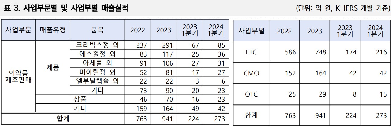 - 주요 제품: 크리빅스, 다파그린지정, 소부날에이정 등