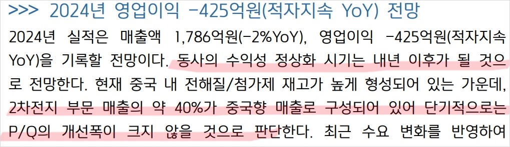 - 2024년 영업이익 -425억원 예상