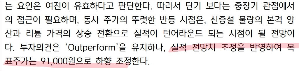 - 신증설 물량 양산 및 리튬 가격 상승 시 실적 회복 기대