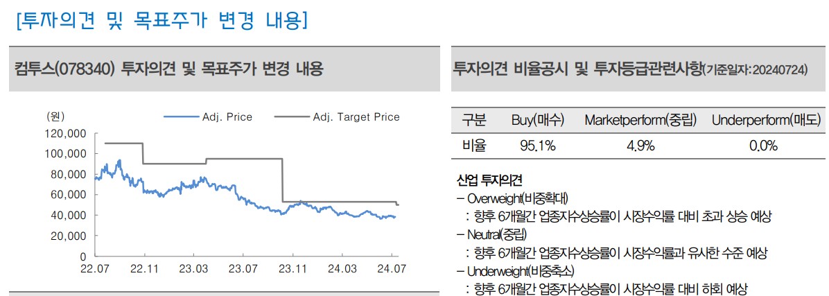 컴투스의 향후 주가 전망은 신작 게임의 성과에 크게 좌우될 것으로 보임. 특히, 2025년 출시 예정인 일본 프로야구 모바일 게임은 큰 기대를 받고 있으며, 성공 시 주가 상승의 주요 요인이 될 것임. 현재 주가는 다소 저평가된 상태로 보이며, 신작 게임의 성공 여부에 따라 주가가 크게 변동할 가능성이 있음. 따라서 투자자들은 신작 게임의 성과와 시장 반응을 주의 깊게 살펴볼 필요가 있음.