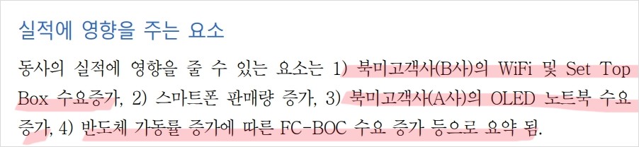 최근 코리아써키트는 북미 주요 고객사인 B사와 A사의 주문 증가로 수주량이 크게 늘었음. 특히, OLED 노트북과 스마트폰 수요 증가가 큰 호재로 작용하고 있음. FC-BGA 부문에서도 수익 개선이 기대되며, HDI 부문은 북미 고객사의 태블릿 PC, SSD, 휴대폰 수요 증가로 실적 회복이 예상됨. 이러한 실적 개선은 주가에 긍정적인 영향을 미칠 것. 또한, 메모리 부문의 가동률 증가로 인해 수익성이 개선될 전망.