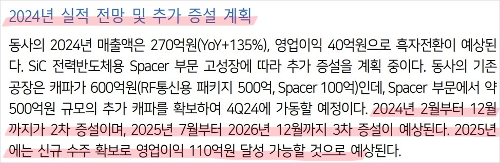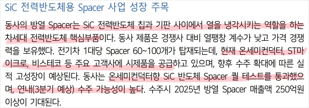 - SiC 전력반도체용 Spacer 사업 성장 주목