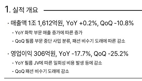💣 실적이 조금 부진하긴 한데 1분기라서 어쩔 수가 없음. 이건 운명임