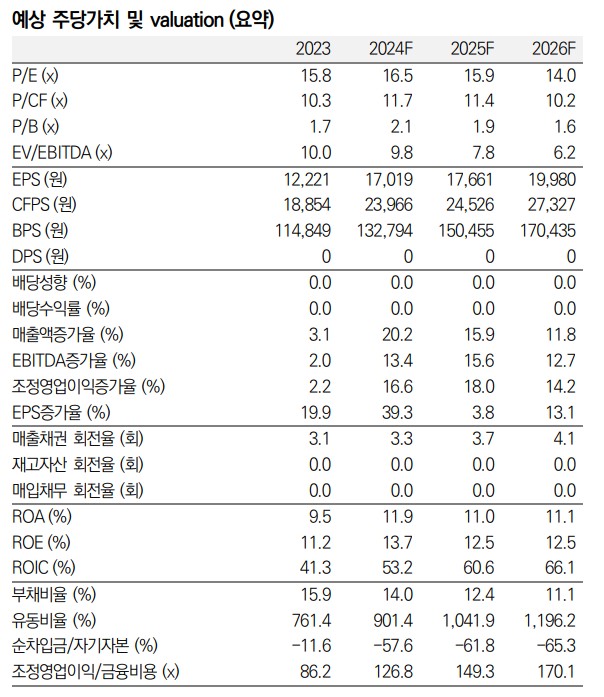 | PER | 16.5배 | 15.8배 | 16.5배 | 16.5배 |