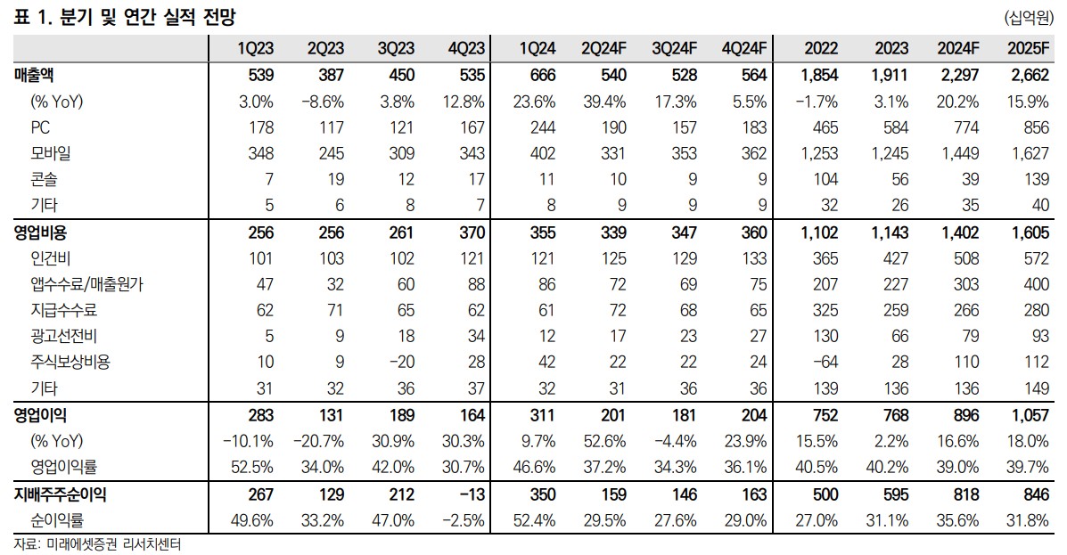 크래프톤은 PUBG와 다양한 신작 게임을 통해 글로벌 시장에서 성과를 내고 있는 대표적인 게임 회사. 2분기 매출액 5,400억 원으로 전년 동기 대비 39% 증가했고, 영업이익은 53% 증가한 2,010억 원으로 예상됨. PC 매출은 1,900억 원, 모바일 매출은 3,310억 원으로 예상되며, 스팀에서 높은 동시접속자 수를 유지하고 있음. 중국 지역 프로모션 정상화로 모바일 부문 호조 가능성도 높아짐. 뉴진스 사태의 재무적 영향은 제한적으로 예상되며, 다양한 보상안을 통해 유저들의 반응을 관리 중.