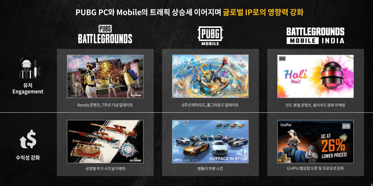 • PUBG 모바일의 트래픽 및 매출 증가