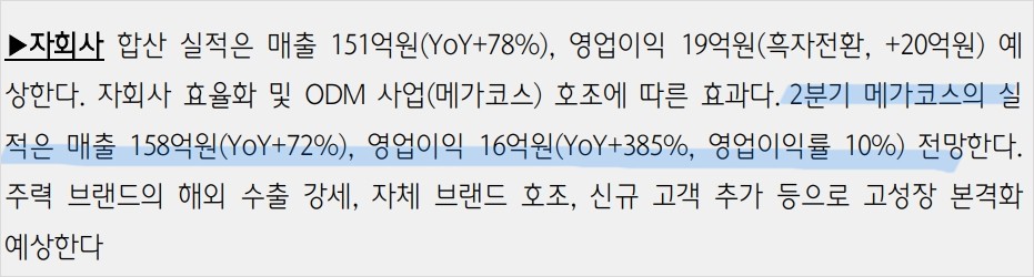 - 자회사 메가코스의 실적 호조