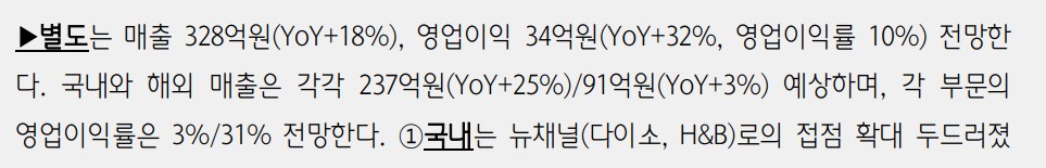 - 국내와 해외 매출 각각 237억원(YoY+25%)과 91억원(YoY+3%) 예상
