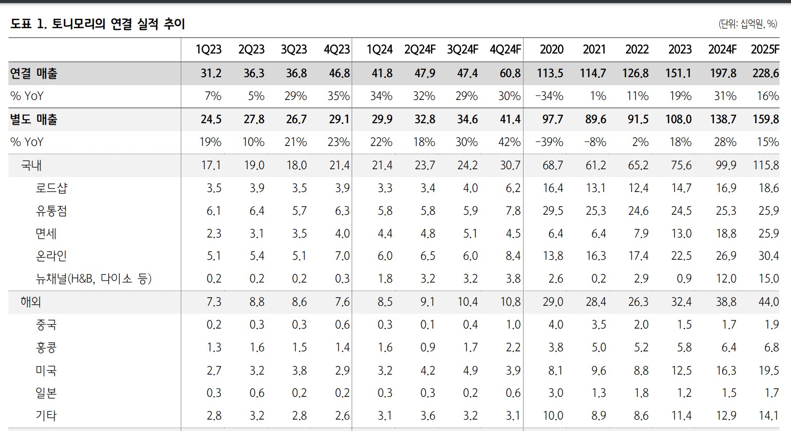 토니모리는 브랜드 사업과 ODM 부문 모두에서 긍정적인 성과를 내고 있으며, 특히 국내외 다양한 채널에서의 매출 증대가 주목됨. 향후 몇 년간의 성장이 기대되며, 재무 상태도 안정적임. 주가는 지속적으로 상승할 가능성이 큼.
