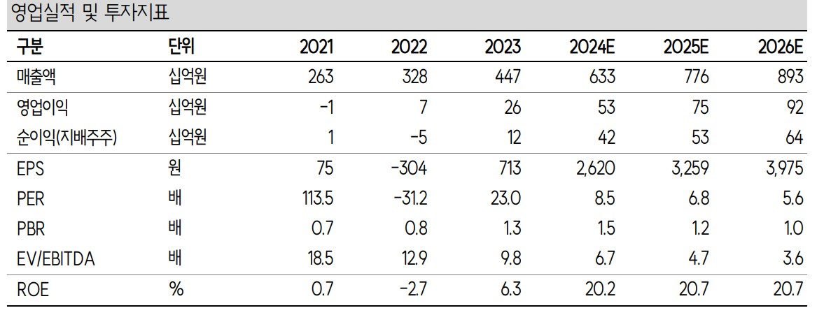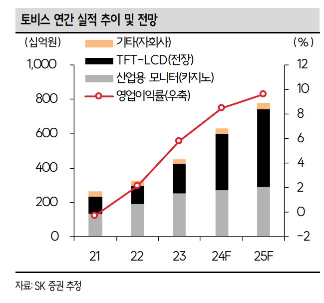 토비스는 2023년 매출액 4,474억 원, 영업이익 257억 원을 기록함. 2024년 예상 매출액은 6,328억 원, 영업이익은 533억 원으로 전망됨. 부채비율은 38.1%로 양호하며, 자산 대비 부채 비율이 낮아 안정적인 재무구조를 갖추고 있음. 아래 표는 2021년부터 2024년까지의 주요 재무지표임.