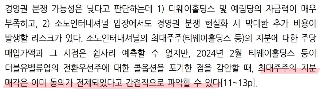 - 소노인터내셔널의 지분 인수로 경영권 안정성 강화