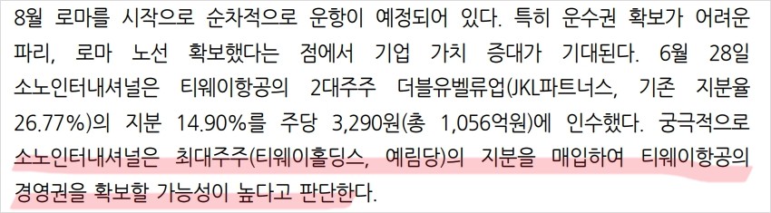 - 기본적 분석 내용: 유럽 노선 신규 취항 및 경영권 안정화