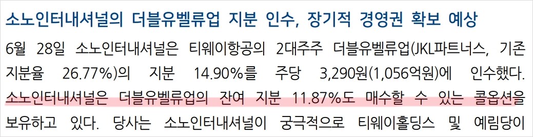 - 소노인터내셔널의 지분 인수로 경영권 안정성 강화