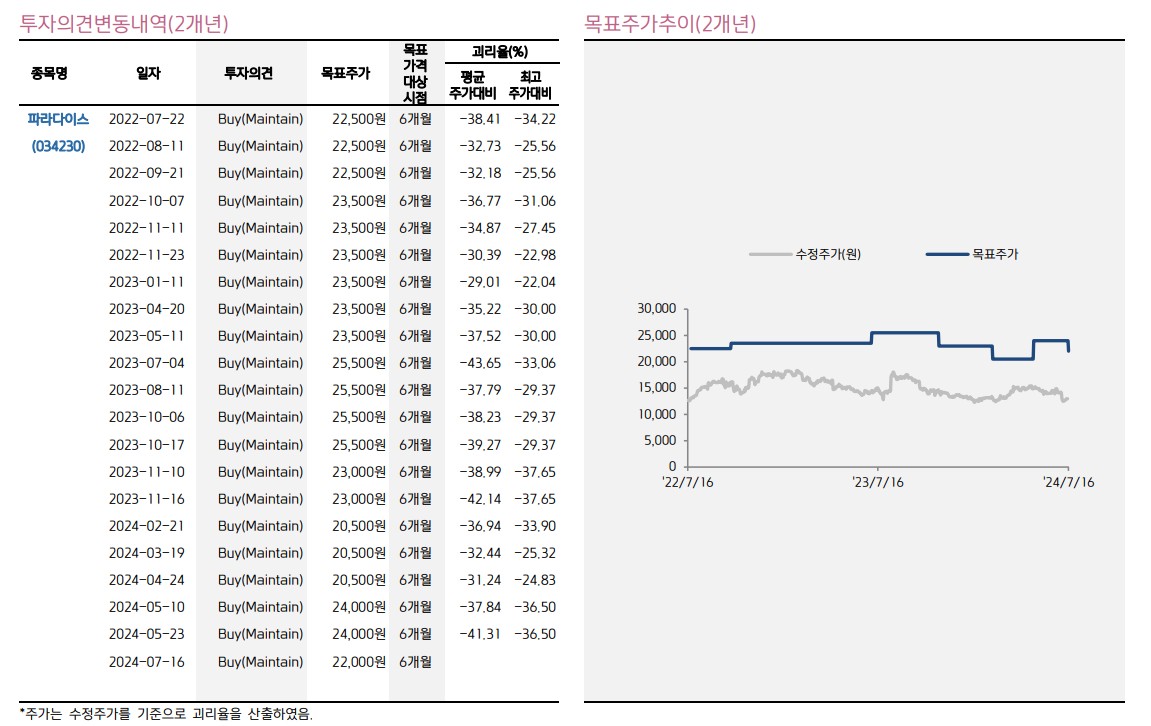 파라다이스 주가 전망