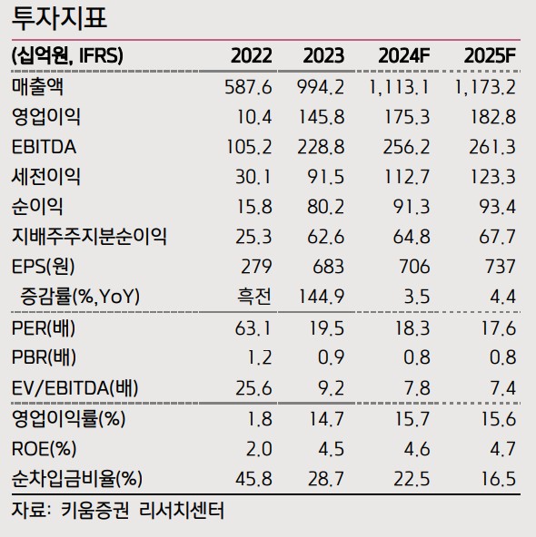 | 매출액 | 587.6 | 994.2 | 1,113.1 | 282.2 |
