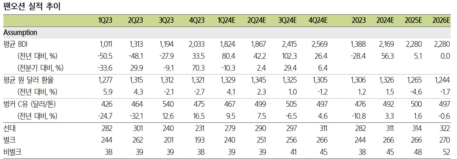 팬오션은 벌크선과 LNG 운반선을 주력으로 하는 해운회사임. 하반기 성수기를 앞두고 운임 강세 기조가 이어지고 있어 실적 개선에 대한 기대가 큼. 지속적인 선대 확대로 실적 기반이 강화되는 한편, 환경 규제 강화와 운하 통행 차질이 장기화되고 있어 업황 호조가 지속될 것으로 예상됨. 팬오션은 선대 확장과 함께 안정적인 매출과 이익을 창출하는 장기 계약을 늘려가고 있음.