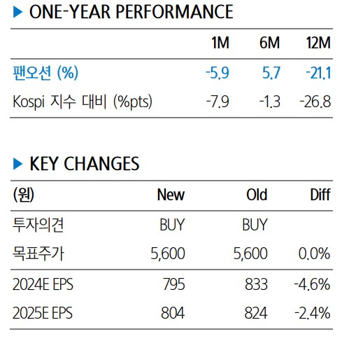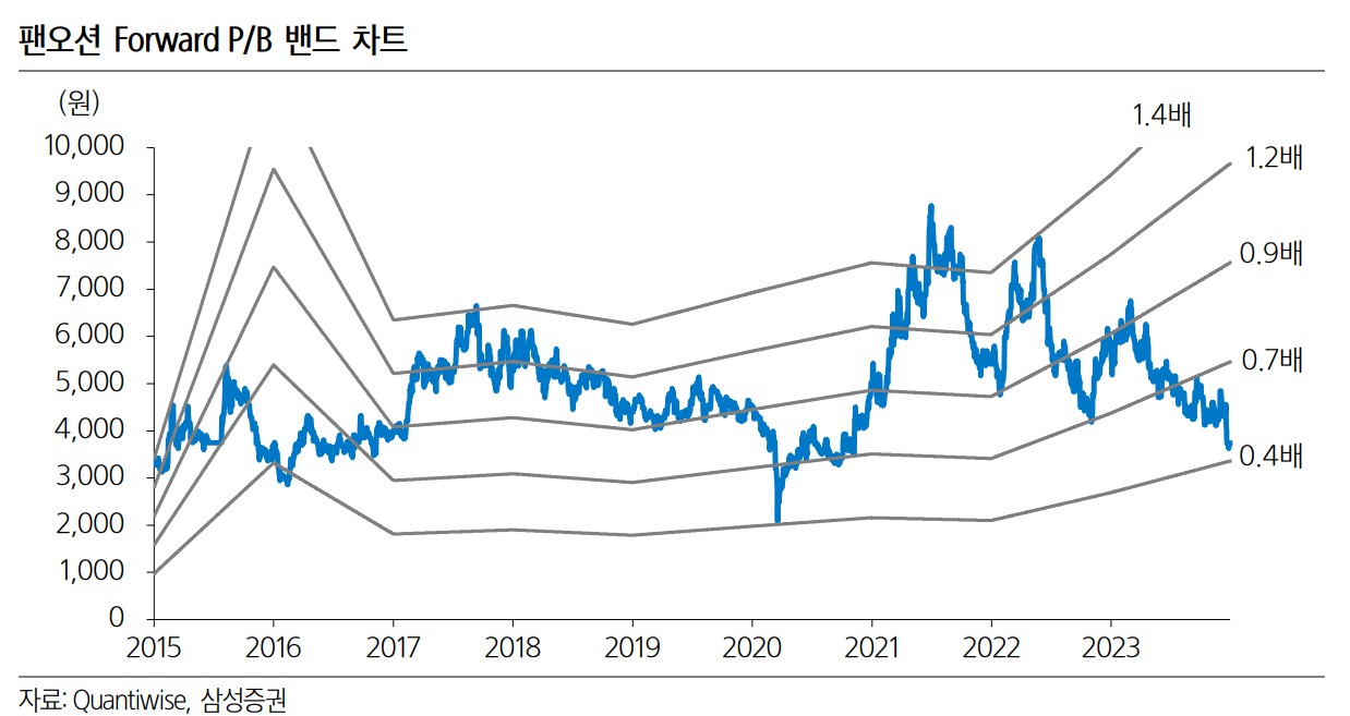 팬오션의 목표주가는 5,600원으로 제시됨. 이는 현재 주가 대비 37.3%의 상승 여력을 가지고 있으며, 다양한 사업 부문의 성장과 수익성 개선 노력이 이를 뒷받침하고 있음. 팬오션의 지속적인 성장은 주가 상승의 주요 원동력이 될 것임.