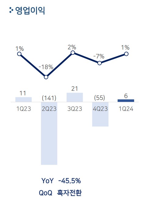 영업이익 164억 -164억 -78억 6억