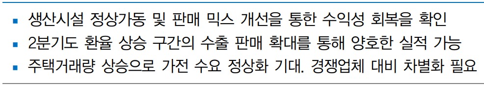 - 미래 주가 전망: 수출 판매 확대와 가전 부문의 수요 회복