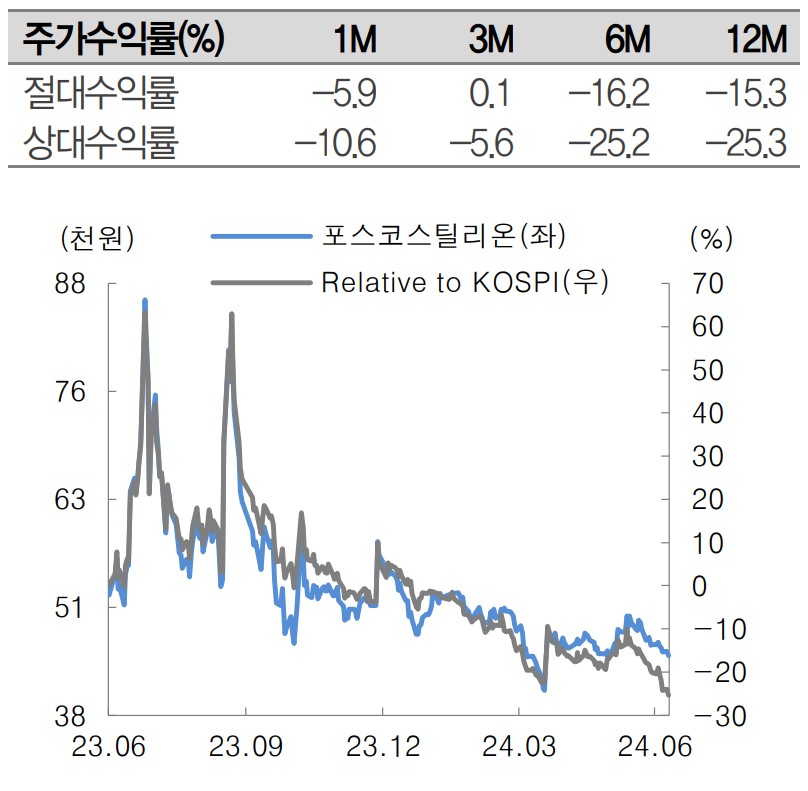 A. 포스코스틸리온의 주가는 하반기 성수기와 주요 연휴로 인해 실적 개선이 예상되며, 장기적으로는 상승 가능성이 높음.