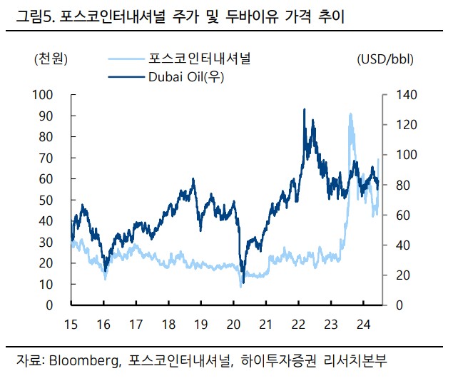 포스코인터내셔널의 주가는 최근 천연가스 Upstream 사업 확장과 함께 상승세를 보이고 있음. 특히, 세넥스에너지 인수와 관련한 매출 증대가 주가 상승의 주요 요인이 될 것임.