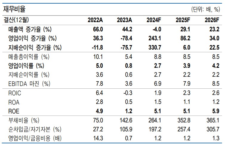 | 부채비율 | 143.4% | 150.3% | 264.1% | 352.8% | 365.1% | 345.7% |