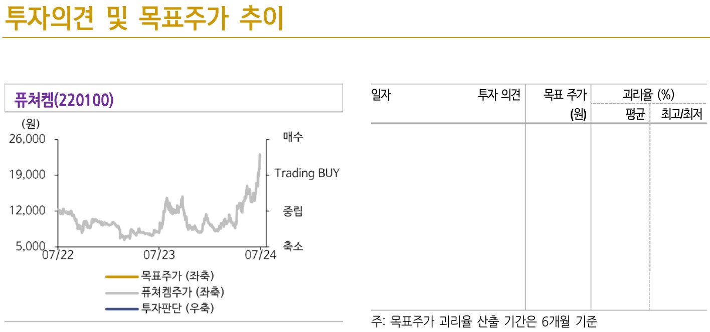 퓨처켐의 목표 주가는 30,000원으로 설정됨. 이는 전립선암 진단제와 치료제의 상용화와 함께 실적 개선을 반영한 것임. 따라서, 투자자들은 퓨처켐의 주가 상승 가능성에 주목할 필요가 있음.