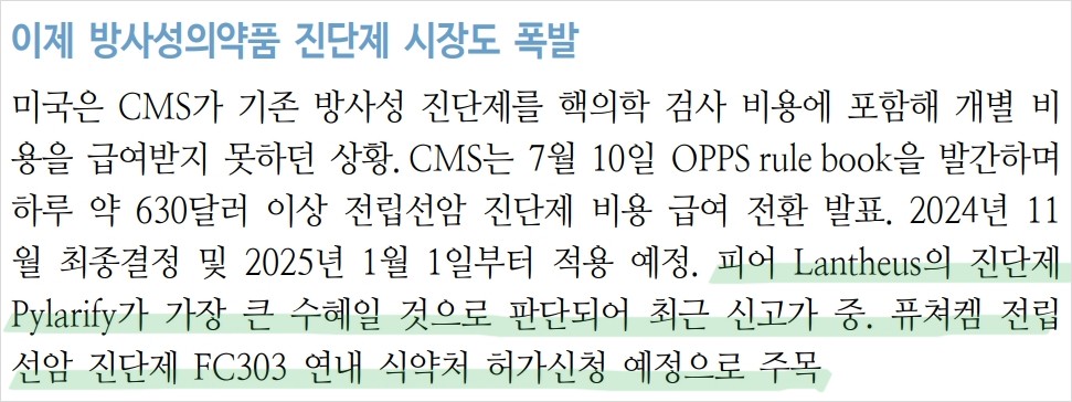 • 기본적 분석: 미국 CMS의 전립선암 진단제 급여 적용 발표
