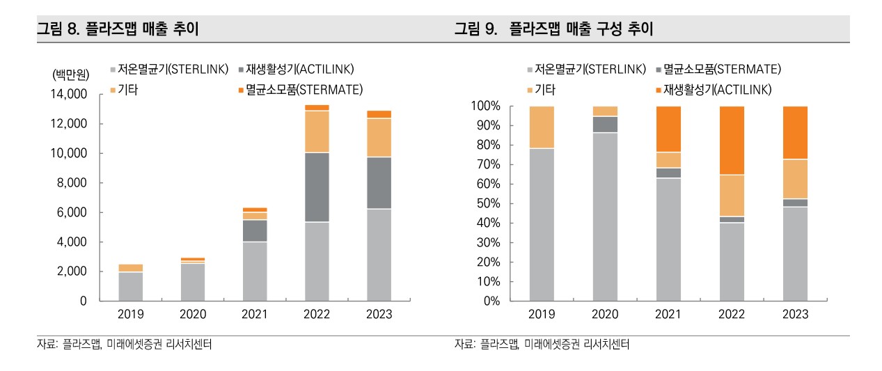 플라즈맵은 최근 글로벌 시장에서 주력 제품의 수요가 증가하고 있음. 특히 유럽과 북미 지역에서 Sterlink 제품의 판매가 호조를 보이고 있으며, 신규 출시된 Plasmapp 시리즈도 긍정적인 반응을 얻고 있음. 주력 제품의 글로벌 확장이 가속화되고 있음.