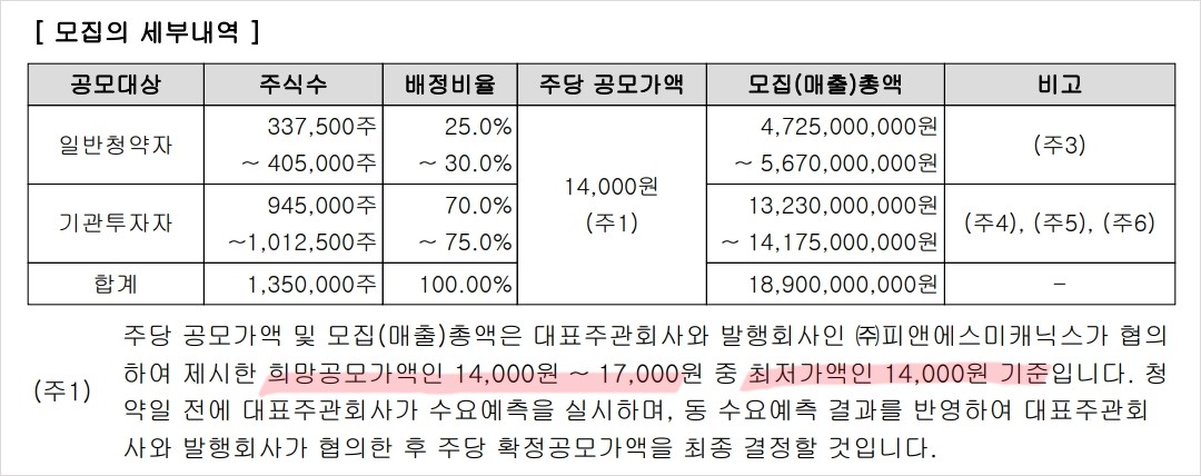 💊 피앤에스미캐닉스 공모 개요를 요약하면 아래와 같음.