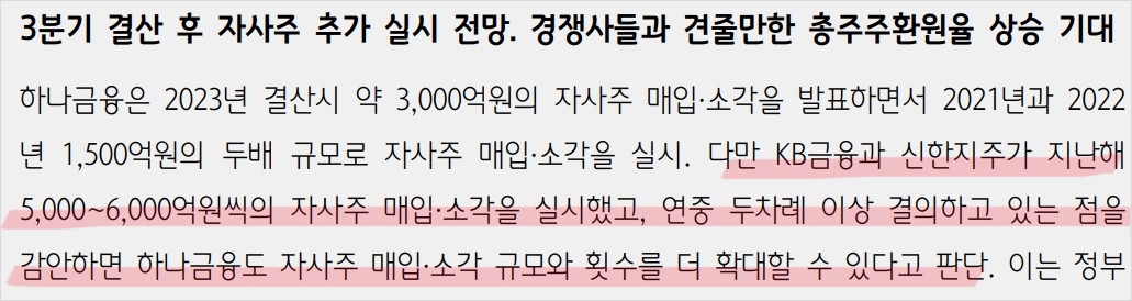 하나금융지주는 최근 금융사들이 다 그러듯이 주주환원책을 아주 적극적으로 쓰고 있는데 이와는 별개로 엄청난 이익도 남기면서 꽤 좋은 실적을 보여주고 있음. 그만큼 주가도 엄청나게 오르는 바람에 지금 들어가기에는 좀 무서움..ㅠㅠ 나도 데려가주지.. ㅠㅠ본 글은 투자 권유글이 아님. 증권사 리포트를 바탕으로 작성되었음.