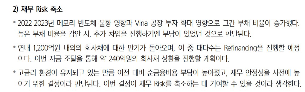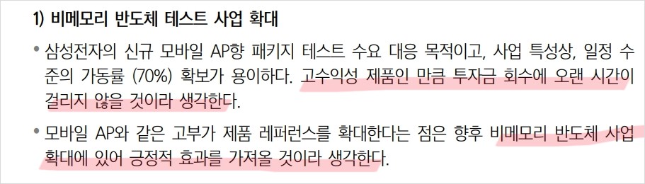 - 삼성전자향 제품 다각화와 SK하이닉스의 외주 확대 효과로 매출 증대가 예상됨.