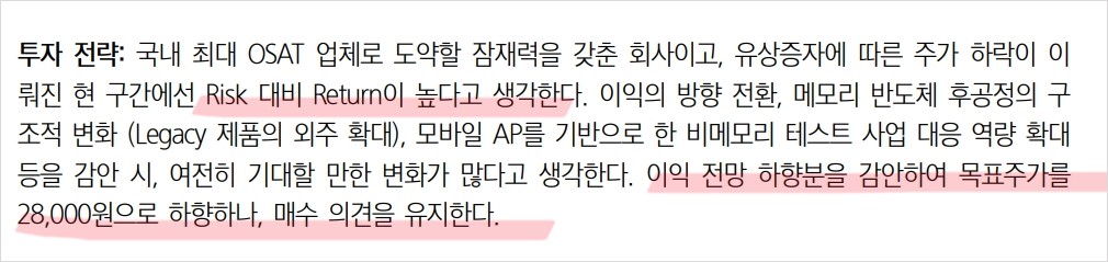 - 기술적 분석: 메모리 반도체 및 비메모리 반도체 후공정 서비스에서의 경쟁력 보유.