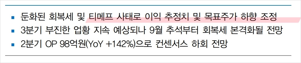 A. 티메프 사태와 같은 단기적 악재가 있었으나, 9월 추석 연휴를 기점으로 회복세가 기대되고 있습니다.