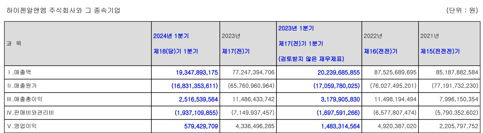 하이젠알앤엠의 최근 재무 실적 매우 긍정적. 2023년 온기 기준 EBITDA 6,252,866천 원, 전년 대비 큰 폭 증가. 이러한 실적 향상은 회사의 지속적인 혁신과 시장 확대 노력의 결과. 회사의 재무 상태 안정적이며, 앞으로의 성장 가능성 높게 평가. 특히, 수익성 개선과 함께 자본 구조의 안정성 확보, 투자자들에게 매력적 투자처로 평가. 앞으로도 지속적인 성장 기대.