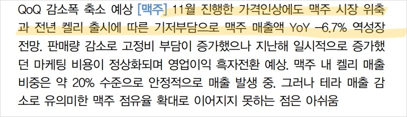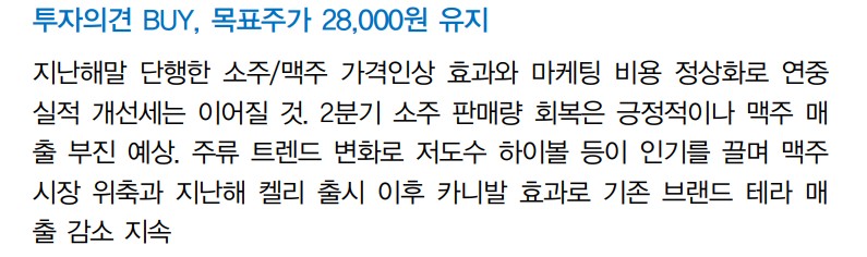 - 미래 주가 전망: 소주와 맥주 부문 모두에서의 성장 가능성