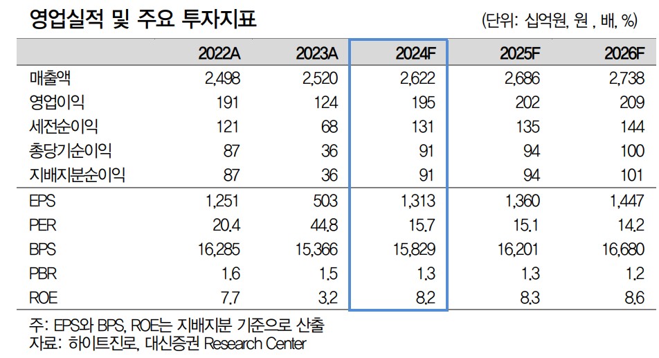 하이트진로는 소주와 맥주 부문에서 안정적인 성장을 이어가고 있음. 주요 성장 동력은 소주 판매량 회복과 맥주 신제품 출시. 소주 부문은 가격 인상과 판매량 회복으로 인해 지속적인 매출 성장이 기대됨. 반면, 맥주 부문은 시장 위축과 경쟁 심화로 어려움을 겪고 있으나, 테라라이트와 같은 신제품 출시로 점유율 확대를 기대할 수 있음. 기술적 분석과 기본적 분석을 통해 볼 때, 하이트진로의 주가는 꾸준히 상승할 가능성이 큼. 2024년 예상 매출액은 2,622억원, 영업이익은 195억원으로 전망됨.