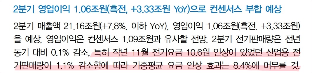• 기본적 분석 내용: 비용 절감 노력과 전기요금 인상 모멘텀이 실적 개선에 기여할 것으로 보임.