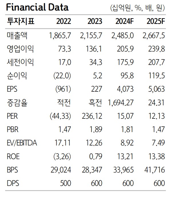 한국콜마는 2024년 전체 매출액 2조 5,000억 원, 영업이익 2,000억 원을 기록할 것으로 예상됨. 국내외 ODM 매출이 크게 증가하며, 주요 자회사 HK이노엔의 실적 호조가 연결 이익에 기여함. 또한, 용기 사업부 연우의 수주 개선과 글로벌 고객사 추가로 외형 증가가 기대됨.